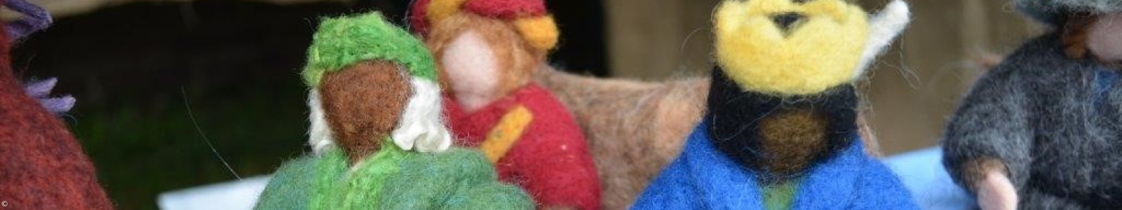 Unversponnene Schafwolle wurde mit Hilfe einer speziellen Nadel verdichtet und modelliert, so dass daraus mit etwas Geduld die unterschiedlichsten Figuren entstanden.